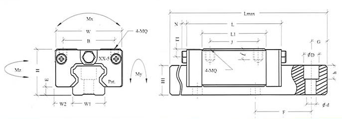 | L max | G | 动额定负荷(G) | 静额定负荷(G) | Mx | My | Mz | 滑块 | 滑轨 | |