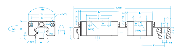 | L max | G | 动额定负荷(G) | 静额定负荷(G) | Mx | My | Mz | 滑块 | 滑轨 | |